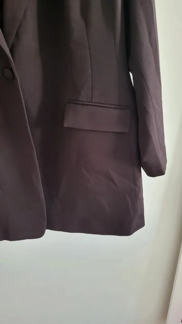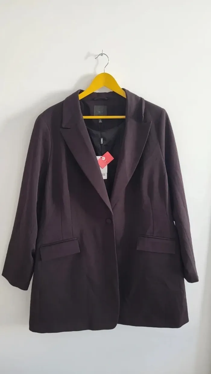 Élégant blazer noir neuf. Doublure intérieure. Bouton central. Très joli. Mannequin 1,75 m, taille 38.