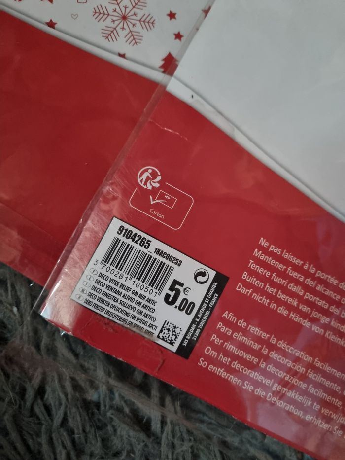 Lot décorations fenêtre Noël, 2 paquets en relief effet miroir marque La Fête Enchantée et un paquet blanc pailleté marque Féeric Christmas.