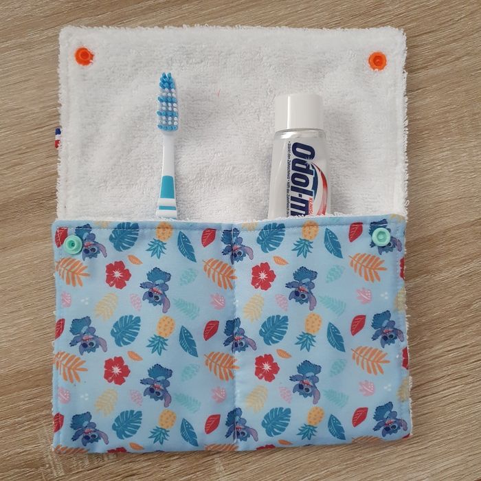 Etui/pochette pour ranger la brosse à dents et le dentifrice.