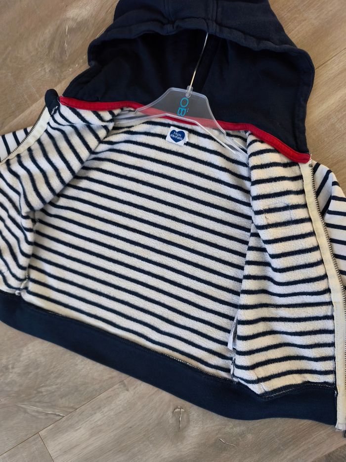 Gilet ou petite veste à capuche Fermeture par zip Rayée type marinière 2 poches devant Taille 24 mois D'autres articles en 24 mois dans mon dressing classé par taille dans à propos Maison non fumeur et sans animaux Envoi possible le jour même avec mondial Relay ou Chronopost ou remise en main propre sur Saleilles #ldurabebe #ldura24mois