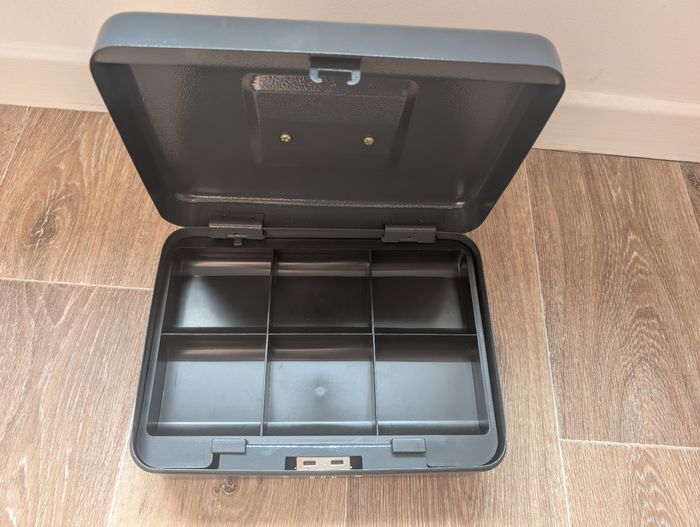 #BoiteAMonnaie #CaisseSecurisee #CoffretAcier #Combinaison #SerrureACode #RangementSécurisé #GrisAnthracite #BoiteDeRangement #CaisseEnregistreuse #ObjetsDeValeur #Sécurité #VenteOccasion