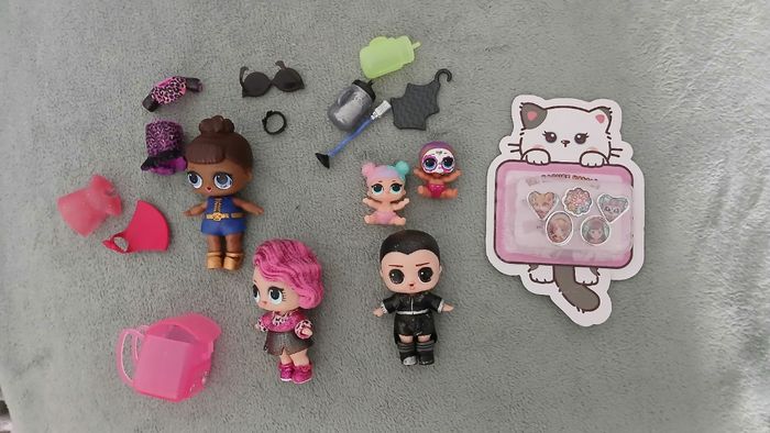 3 poupées lol ( 2 filles et un garçon ) 2 bébés lol Avec accessoires Et bagues