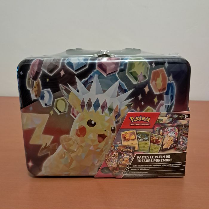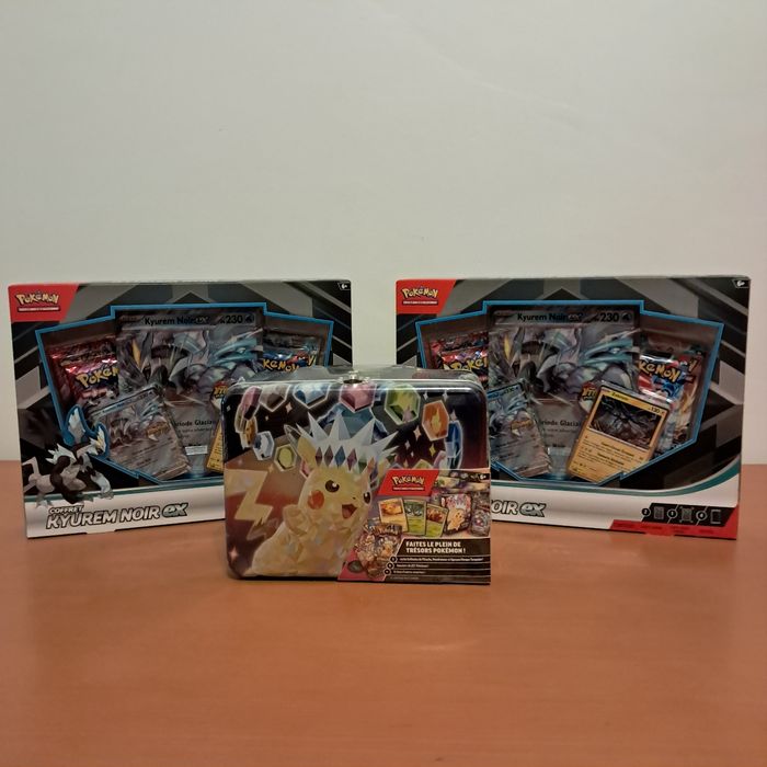 Lot pokémon - 2 coffrets Kyurem scellés (4 boosters dans chaque) - 1 Valisette pikachu téracristal scellée avec 1 mini déchirure dans scellage sur le côté droit, voir photo, (six boosters) Envoi rapide et bien protégé Annonce en ligne = annonce disponible Coffret coffre aux trésors EV8 EV08 Etincelles Déferlantes