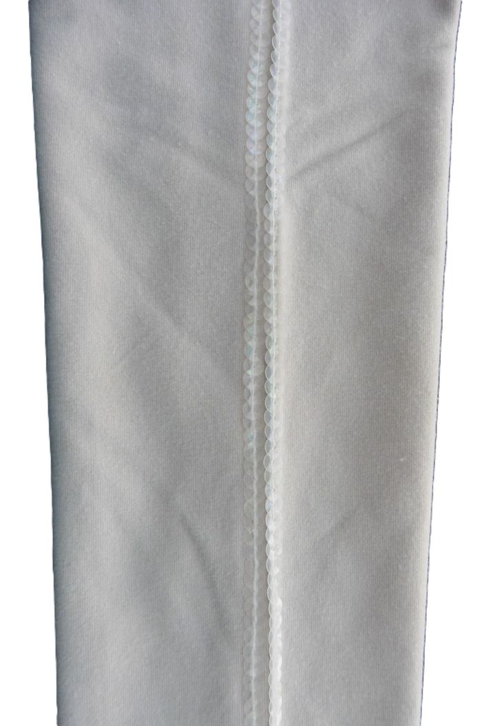 2 RANGEES DE SEQUINS IRISES COUSUS SUR LES MANCHES.