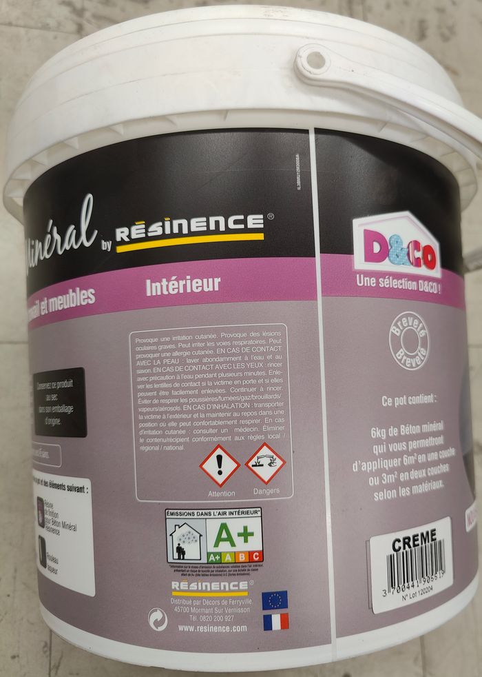 Neuf : Peinture béton minéral by Résinence pour murs, sols, plan de travail et meubles (couleur crèm