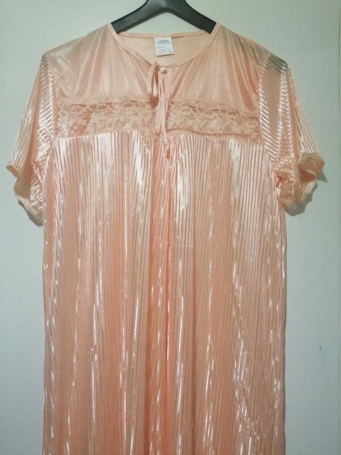 Très jolie chemise de nuit Vintage satinée Lorina saumon avec dentelles. Taille 38.