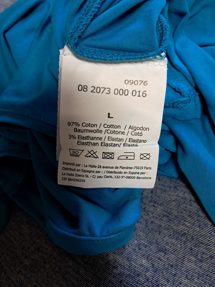 Tee-shirt manches 3/4 La halle taille L Turquoise Réductions lots activées