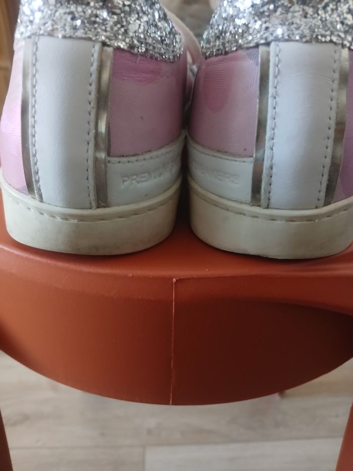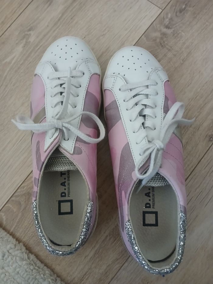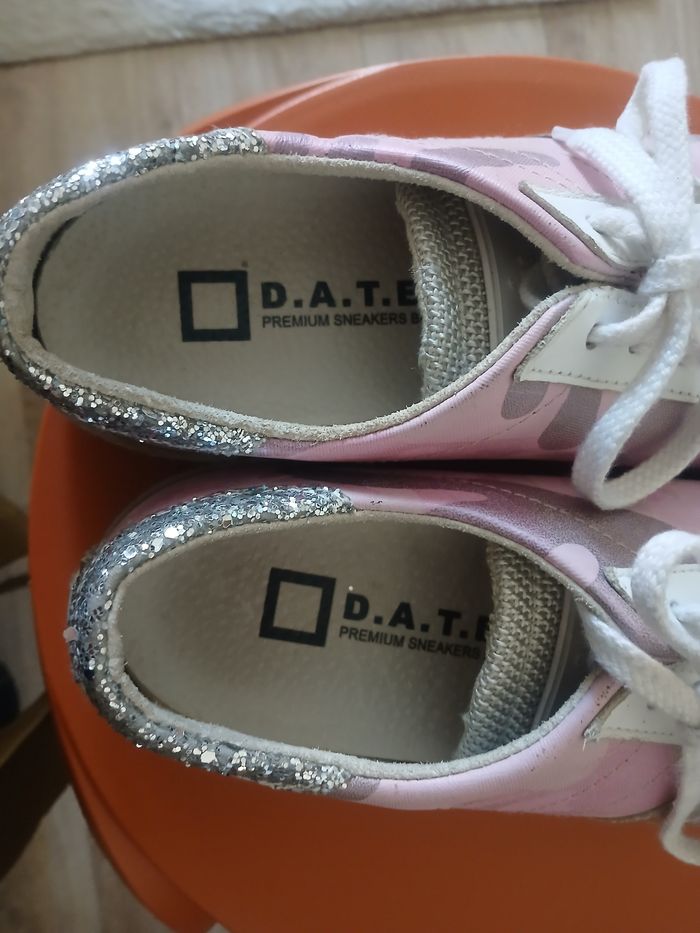 Basket cuir Blanche /rose/argent/paillette Marque D.A.T.E premier speakers brand