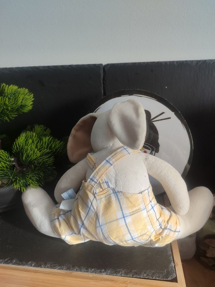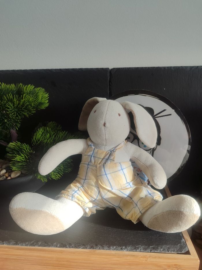 Doudou peluche lapin blanc crème beige salopette Jacadi peluche musique DD003576 - photo numéro 1