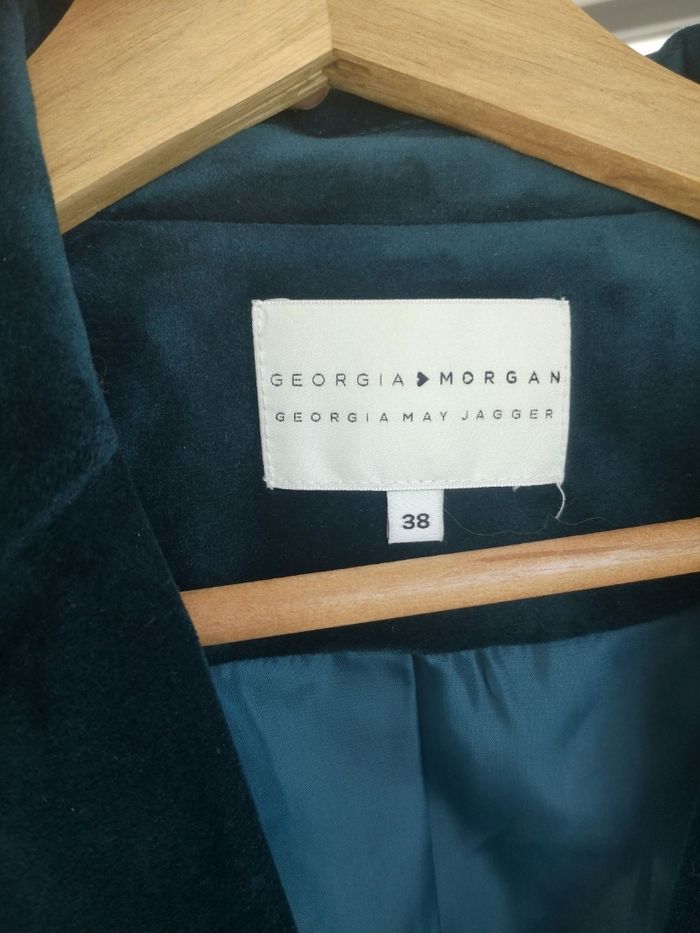 Blazer velours lisse Georgia May Jagger X Morgan. Couleur vert foncé, nuances bleutées. Fermé par crochet invisible. Comme neuf, aucune trace d'usure. Porté 1 fois pour cérémonie.