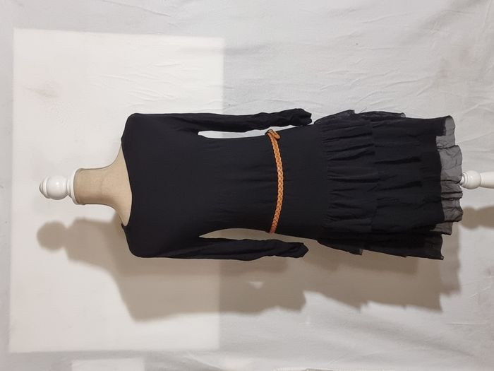 Robe femme à volants manches 3/4 noire taille S. Avec ceinture marron claire. En très bon état. Envoi rapide. Négociable.
