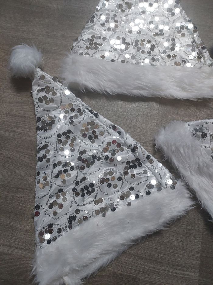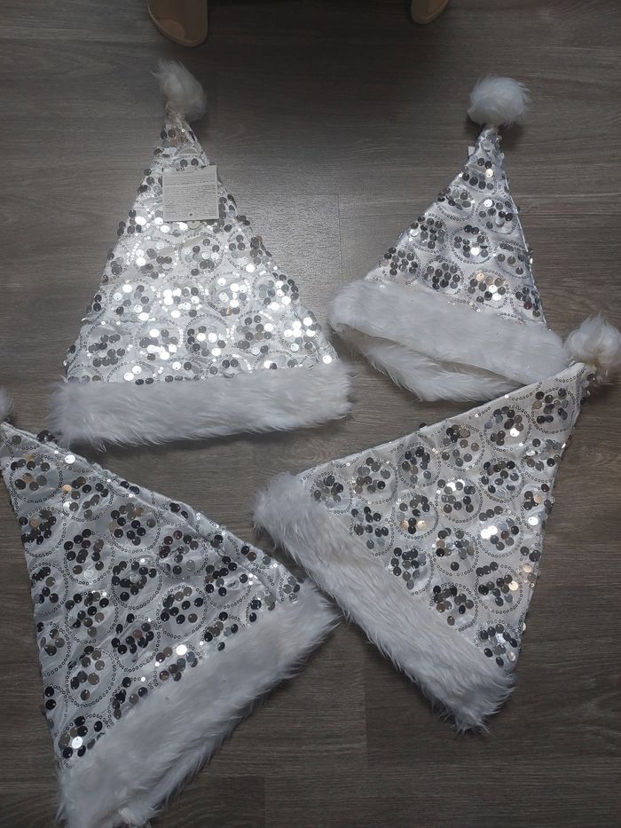 Bonjour Je vends ce lot de 4 bonnets de Noël Jamais porter Blanc et argente
