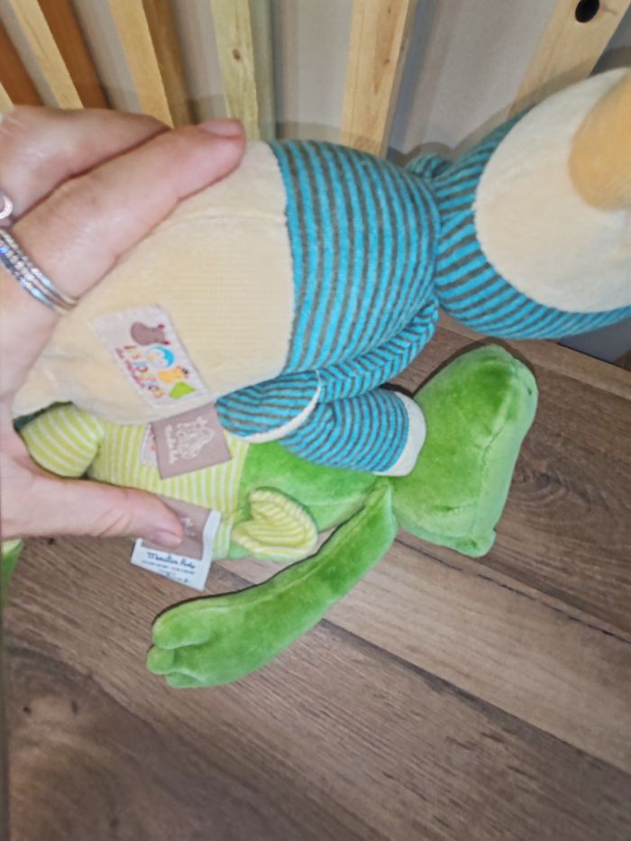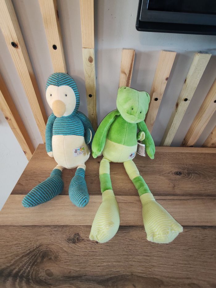 Gilles le Crocodile Julien le pingouin Collection les Loupiots Marque moulin roty Les 2 ont une boîte à musique qui fonctionne parfaitement Étiquette marque présente 25 euros le lot des 2 Envoi en relais