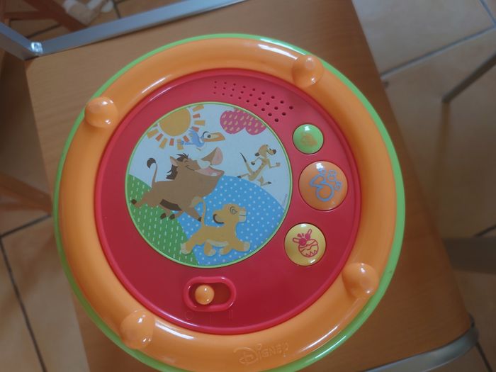 Jeu en bon état sur le thème Roi lion. La musique fonctionne très bien. Le dessous bleu en caoutchouc a un peu jauni. À récupérer à salies de béarn ou Orthez. Pas d'envoi.