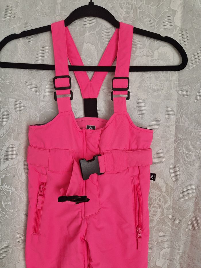 Vends ce pantalon de ski à bretelles pour fille, de couleur rose, en excellent état. Taille 4 ans. Je vends d'autres affaires, n'hésitez pas à regarder ou à demander si besoin.