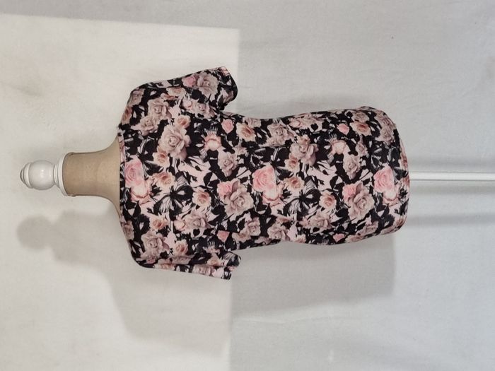 T-shirt femme Jennyfer noir et rose fleuri taille S. En très bon état. Envoi rapide et soigné. Négociable.