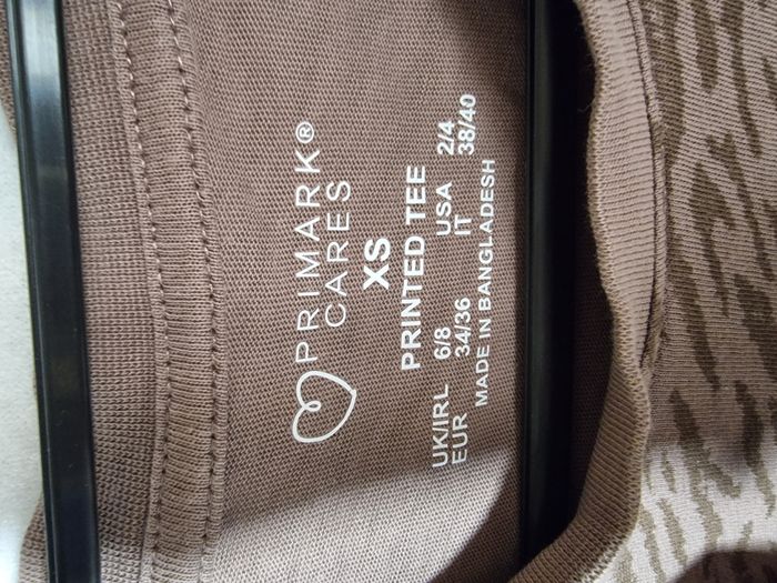 T-shirt femme Primark brun effet tigré taille XS. En très bon état. Envoi rapide et soigné. Négociable.