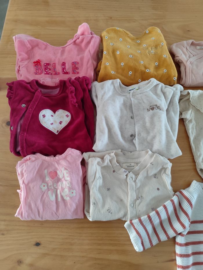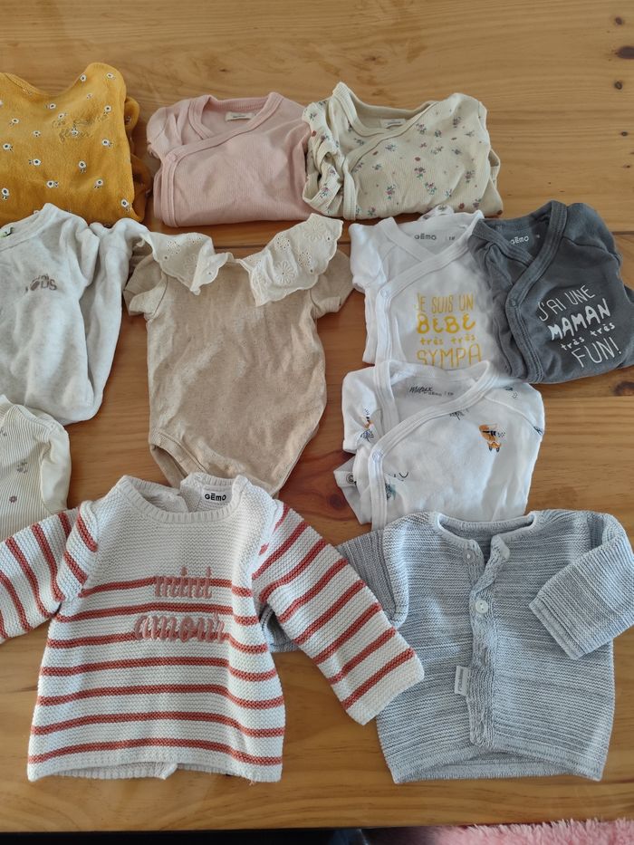 Lots vêtements bébé fille 1 mois 6 pyjamas 6 bodies Un pull laine Un gilet laine