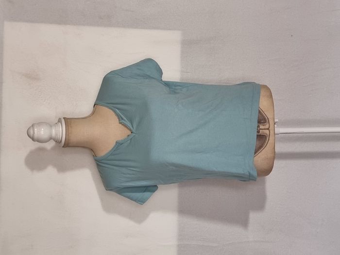 T-shirt femme col V bleu clair taille 46. En bon état. Envoi rapide et soigné. Négociable.