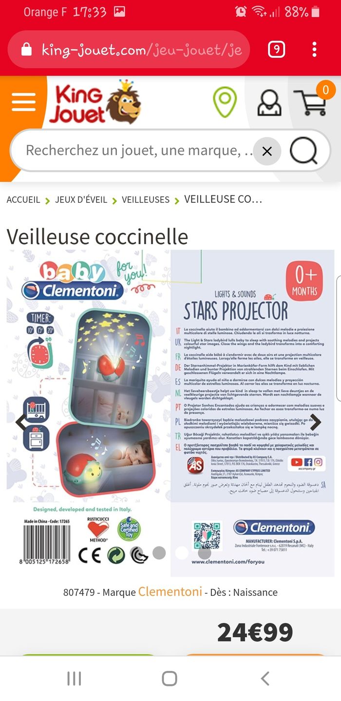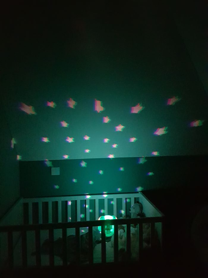 Veilleuse coccinelle comme neuve mais sans emballage. À très peu servit à mon bébé, il avait un doudou musical. Différentes mélodies qui peuvent être associées ou non aux étoiles.