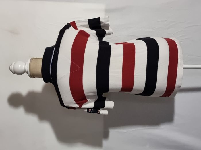 Polo femme Tommy Hilfiger rayé blanc, bordeaux et bleu marine taille S. En bon état. Envoi rapide et soigné. Négociable.