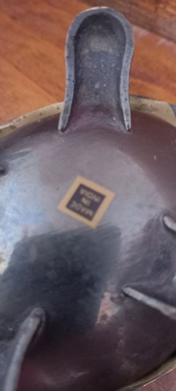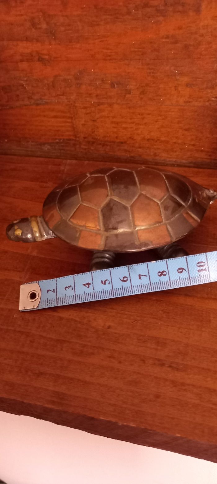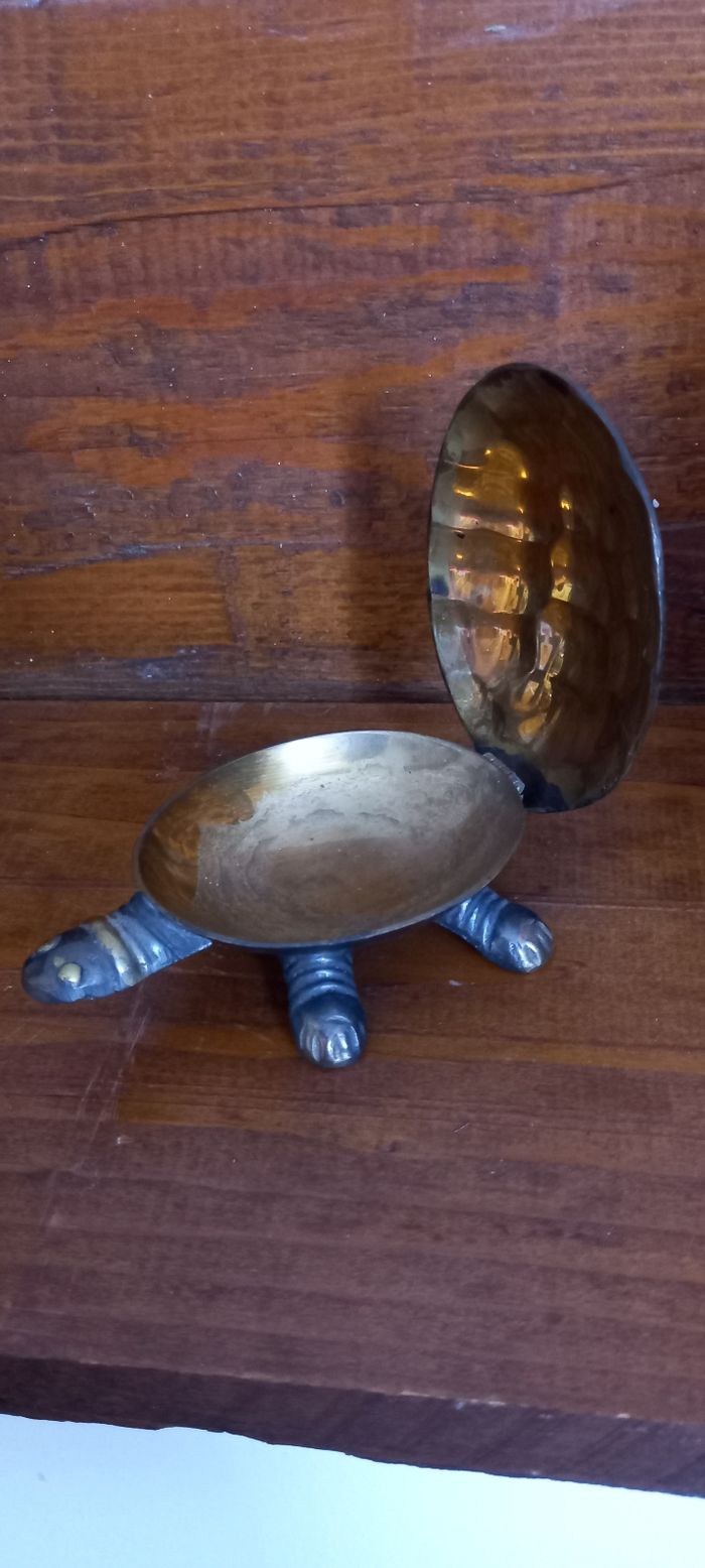 Une tortue avec couvercle, peut servir de coffret à bijoux , brûle encens , cendrier , vide poche etc... je ne sais pas la matière ( cuivre , laiton ... ??? ) fabriqué en Inde