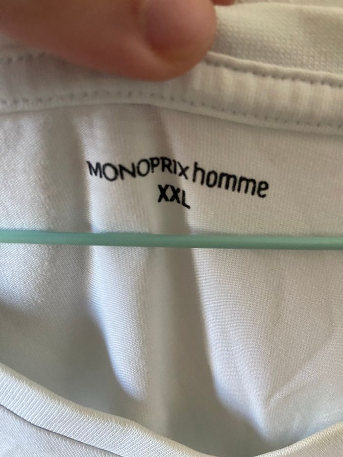 Vend ce t-shirt Monoprix blanc en bon état ! (Col légèrement jaunit) #teeshirthomme #monoprix #taillexxl