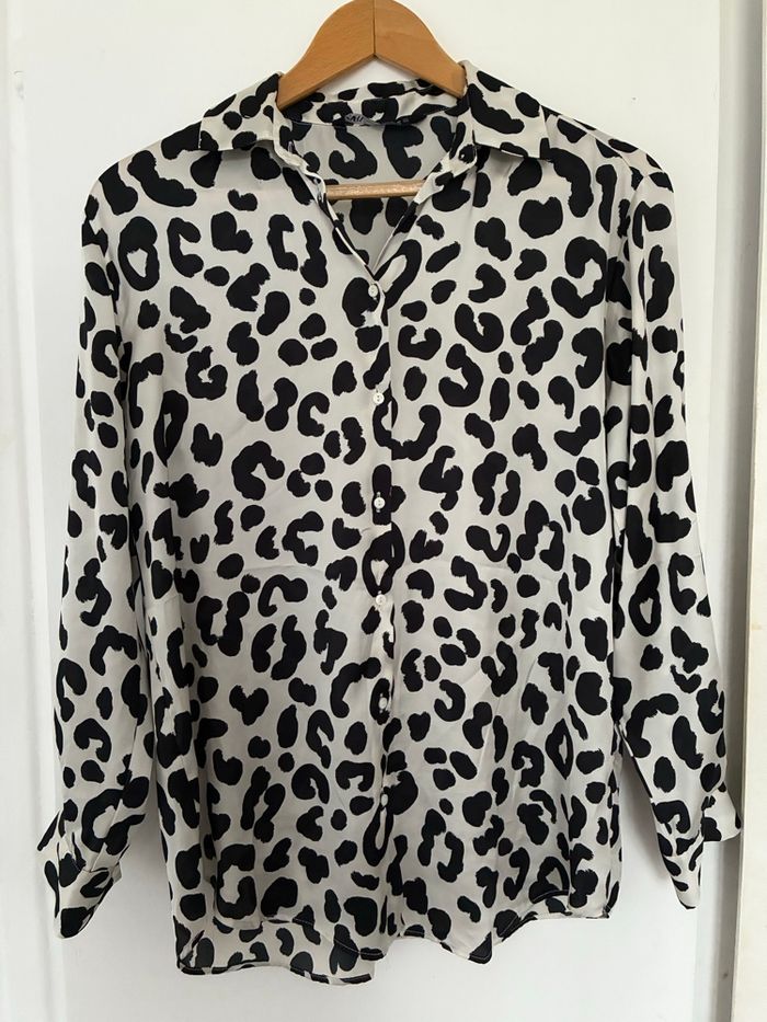 Chemise fluide à imprimé animal, coupe droite et légère. Col classique, manches longues avec boutons aux poignets. Tissu doux et agréable, facile à porter avec un jean ou une jupe. 🖤 Marque : ZARA 📏 Taille XS ✨ Excellent état #zara #chemisefemme #chemiseleopard #imprimeanimal #chemisechic #zaranewcollection #modefemme #ootd #streetstyle #looknoirblanc