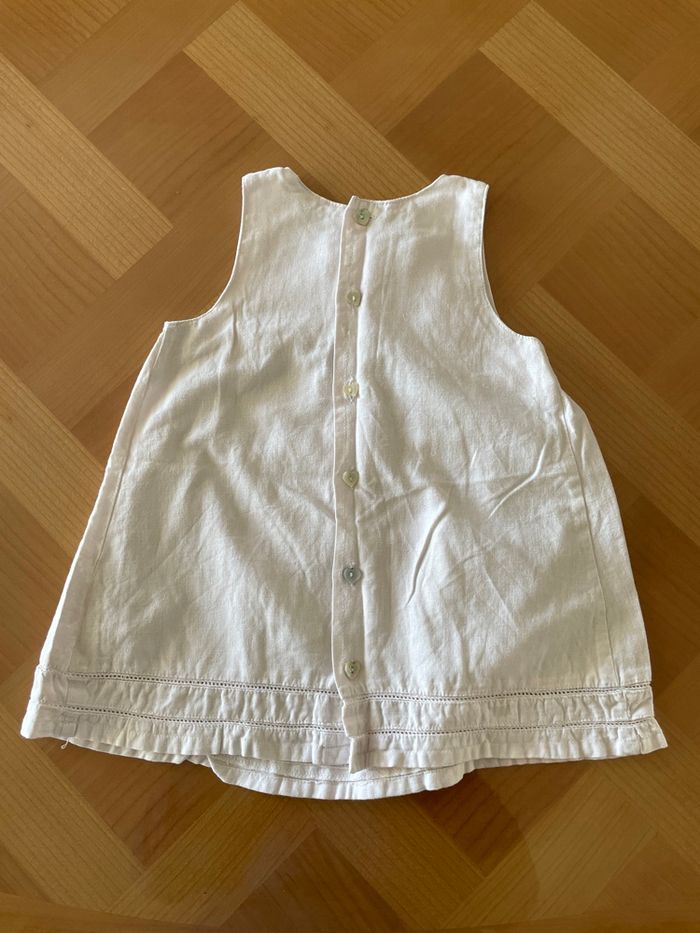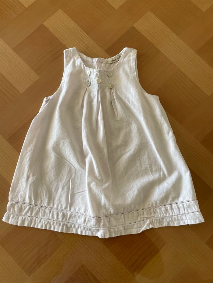 Lot de 2 robes d’été en lin et coton, très bon état, légèrement froissées, pour petite fille de 12 mois -Marque robe motif girafe: Grenadine et mentalo -Marque robe boutons en nacre: gain de blé