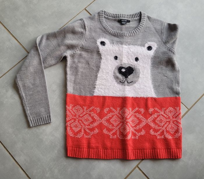Pull de Noël, de couleur gris avec motif ours blanc, de la marque Esmara, taille 38/40, en très bon état. Article lavé pour la vente.