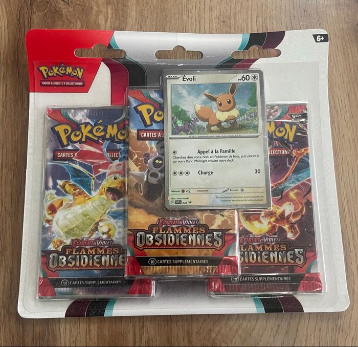 Tripack evoli Flammes obsidiennes EV03 3 boosters 1 carte promo Neuf scellé Fr