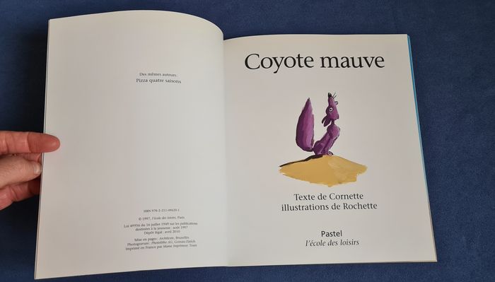 Coyote mauve Texte : Jean-Luc Cornette Illustration : Jean-Marc Rochette Pastel Edition l'école des loisirs Un jour, Jim voit apparaître un coyote au sommet de la colline. Un coyote pas comme les autres. Il est mauve, il sait se tenir sur une seule patte et pousse un drôle de cri. Intrigué, Jim gravit la colline. « Pourquoi es-tu mauve ? » Peut illustrer "la curiosité est un vilain défaut..." Neuf (doublon) - Prix neuf : 12€ Dim : 23 x 20 #coyote #chacal #humour #rusé #astucieux #secret #curiosité #lecoledesloisirs #mar-tayenfant #mar-taylivres