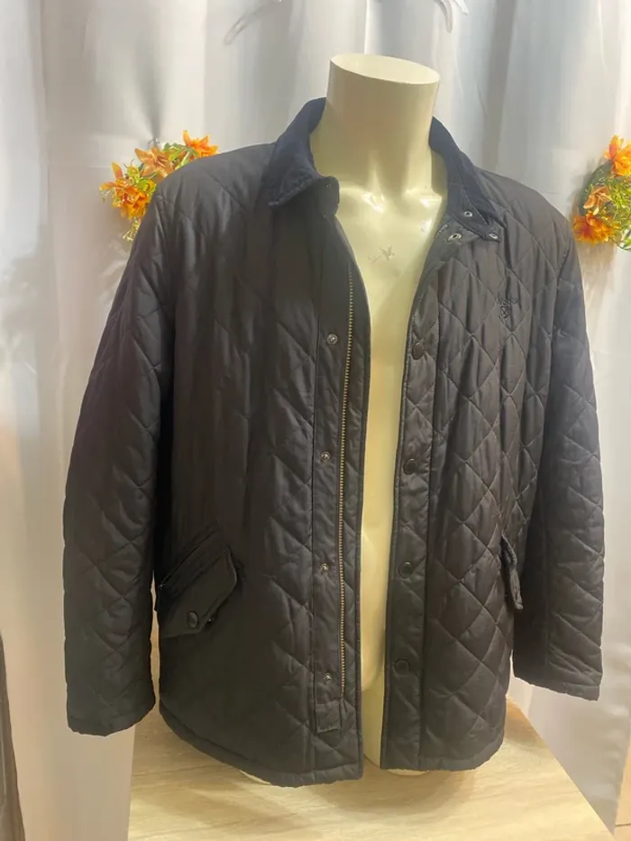 Veste matelassée noire avec col velours bleu Barbour taille XL - n27p