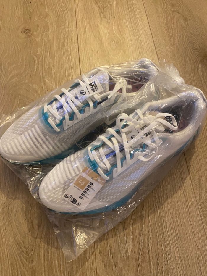 Basket Jeux Olympiques 2024 Paris édition limitée décathlon Prix en magasin de la basket sans l’édition limitée 60 euros Pour les collectionneurs ou les sportifs Taille 45