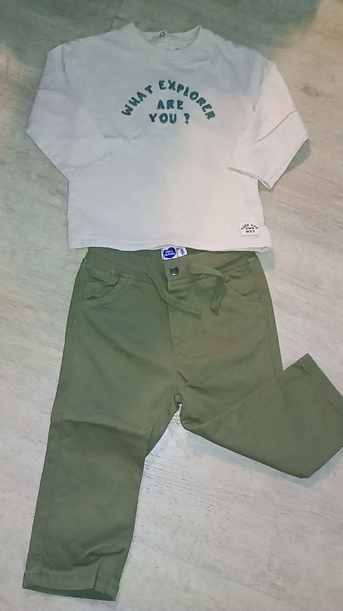 Ensemble garçons taille 18 mois pour le haut Kiabi et le bas mots d'enfants , carton JMF