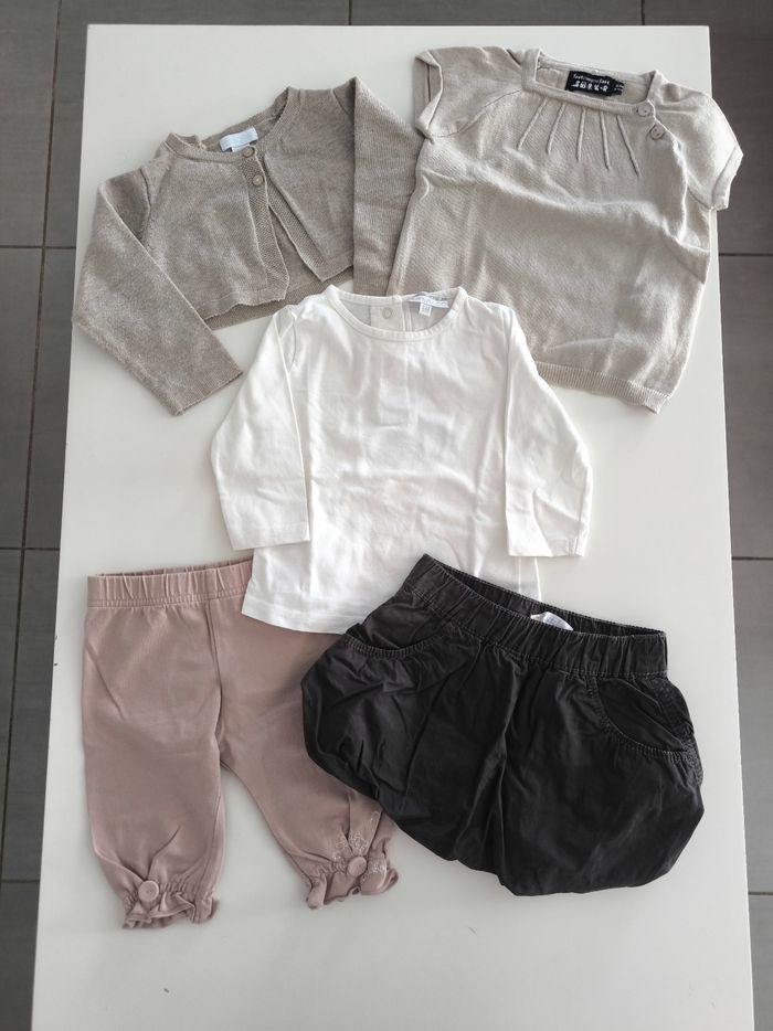 Lot Composé D'une Jupe Boule Doublée Kitchoun, Un Boléro Obaïbi, Un Pull Manches Courtes Tout Compte Fait, Un Tee-shirt Manches Longues Kimbaloo Et Un Legging Court Jean Bourget