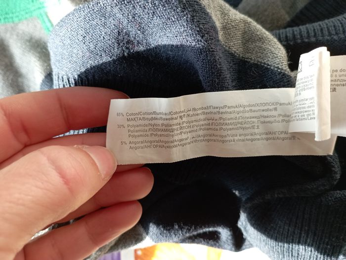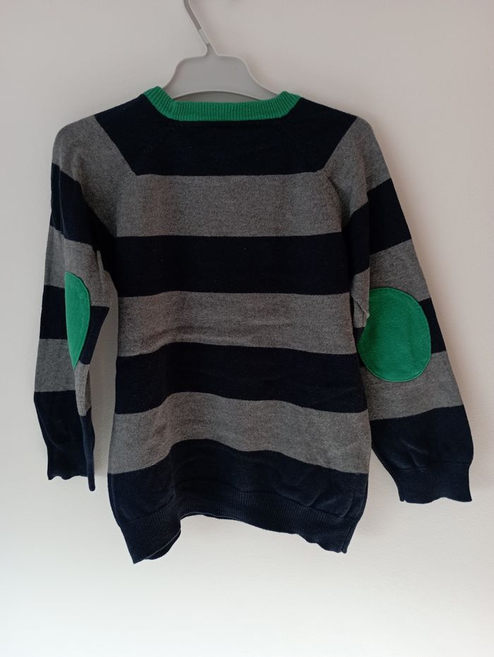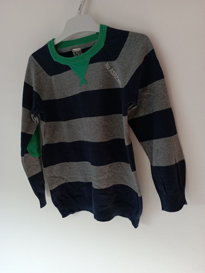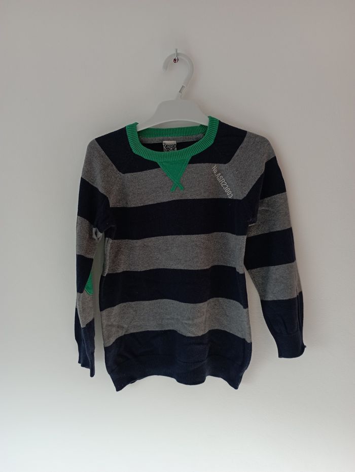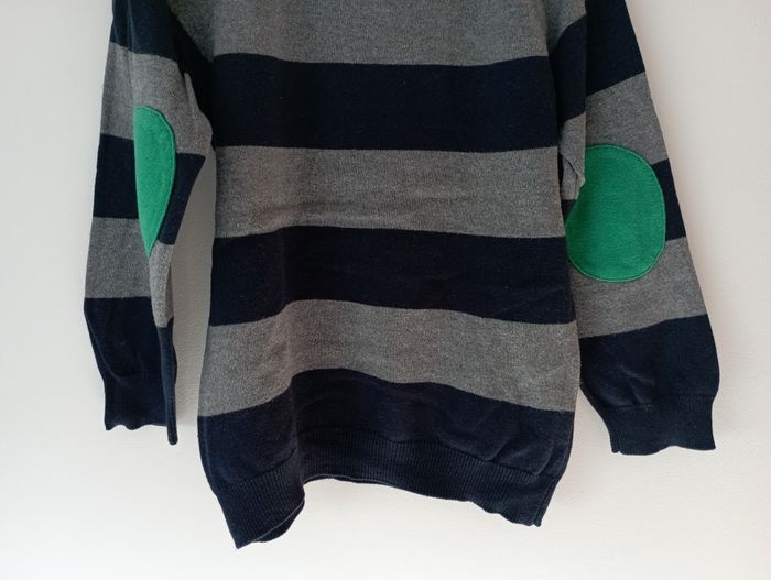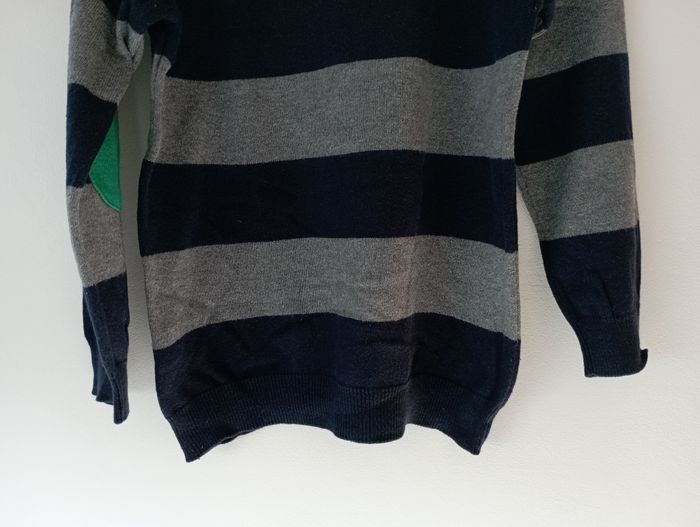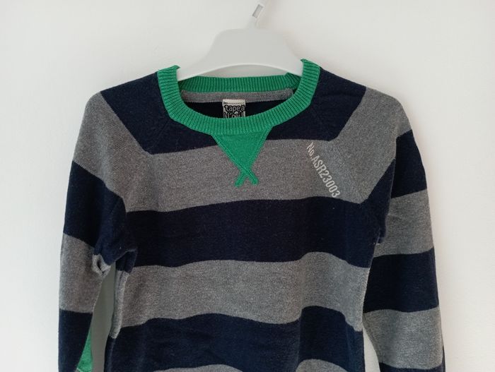 Pull fin en maille rayé gris et noir avec les bords vert neuf juste lavé une fois.