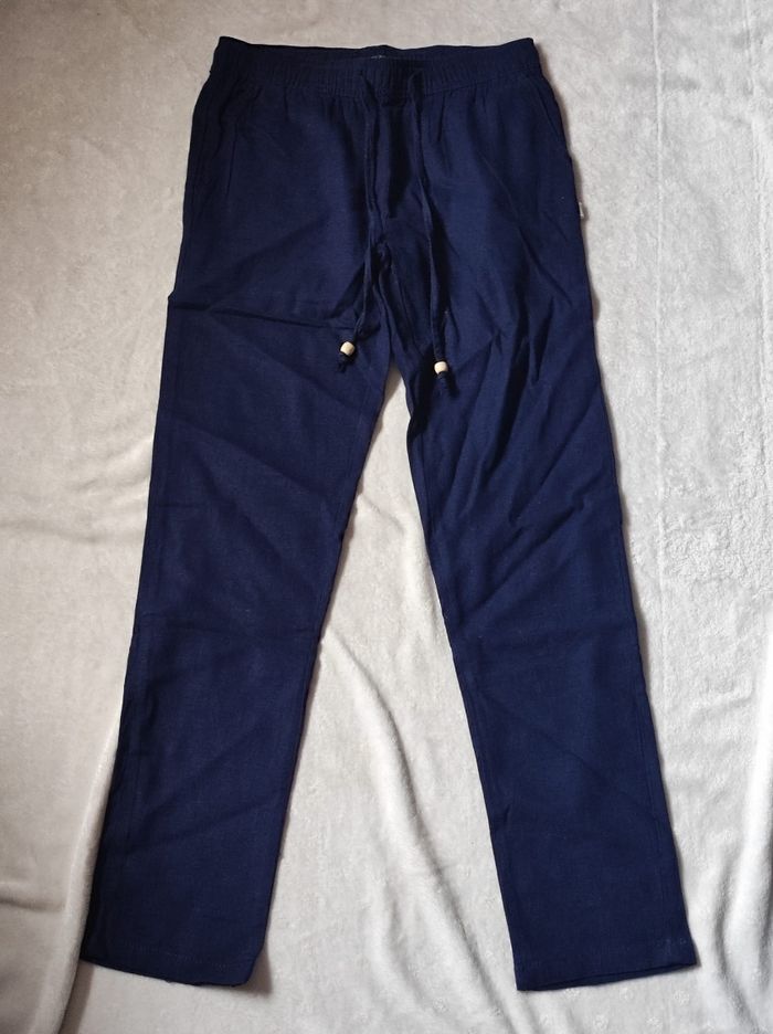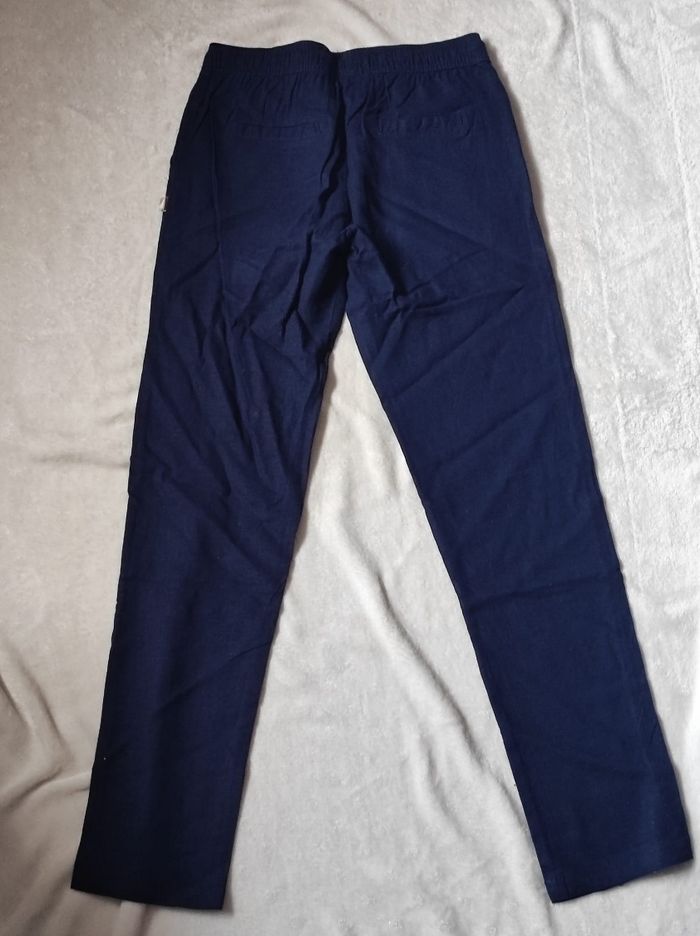 pantalon en bleu marine léger et agréable à porter, cordon et taille élastique. 55% lin et 45% viscose. Marque esmara en taille S / 36. En parfait état, ni trous tâches ou déchirures.