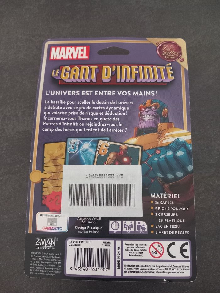 Jeu de carte Marvel Le Gant de l'infinité Neuf