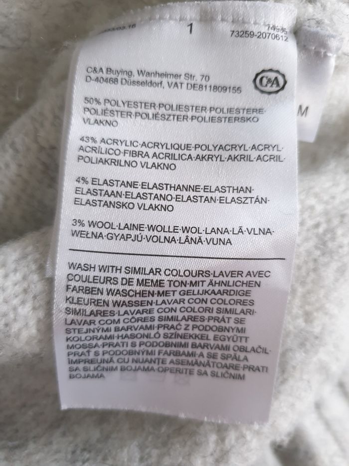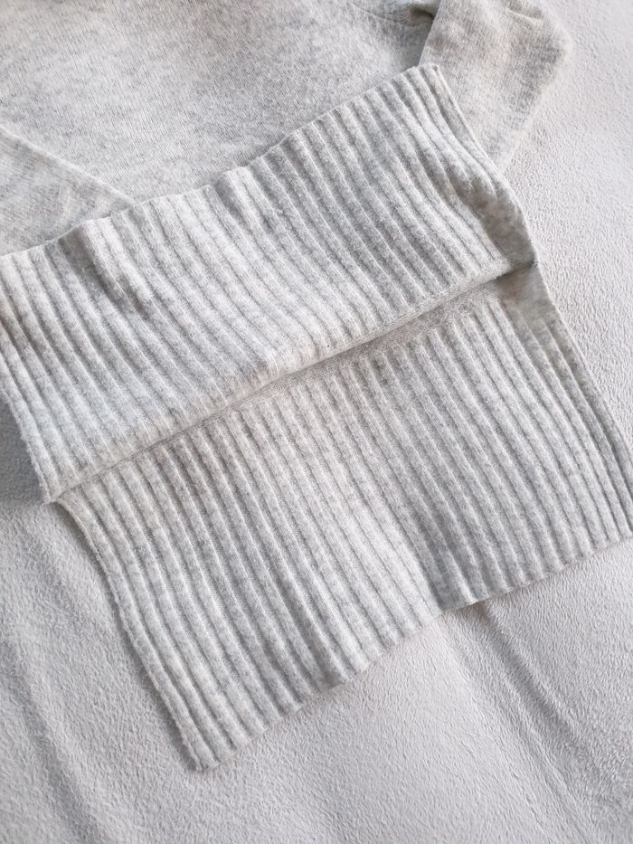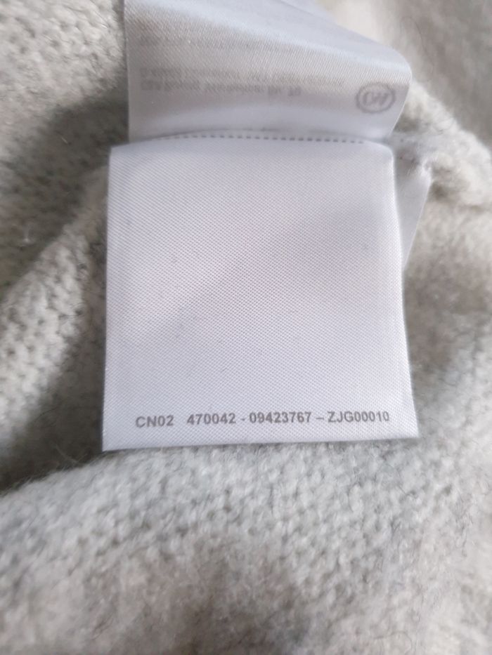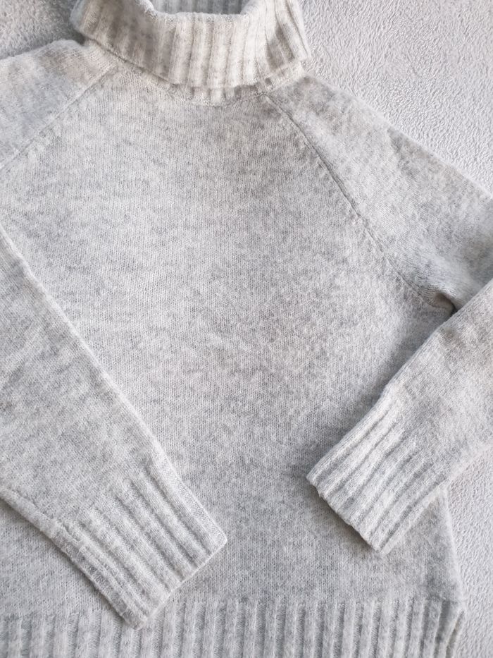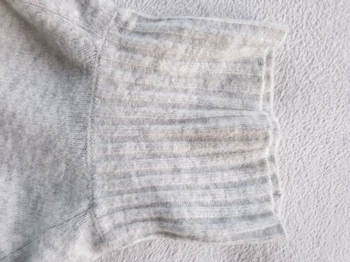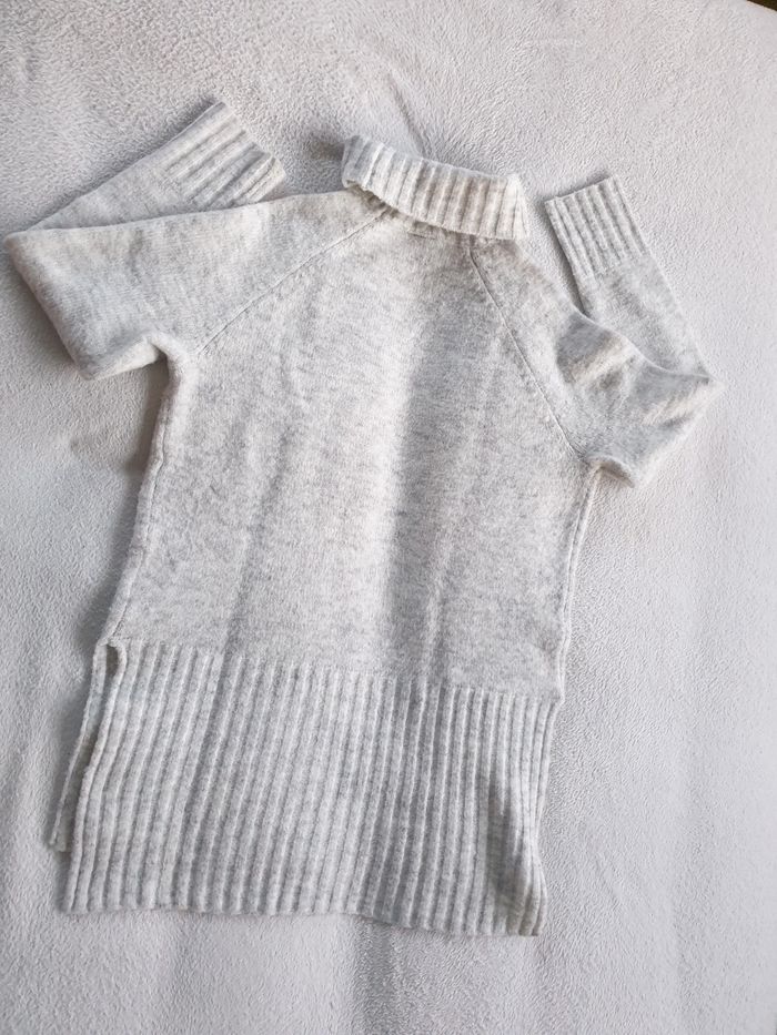 Pull femme long. A col roulé. Blanc/gris. Très bon état. Porté 1 ou 2 fois.