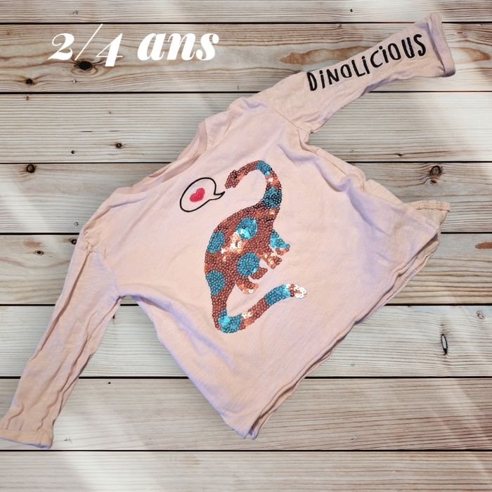 🩖✹ T-shirt manches longues trop fun avec motif dinosaure Ă  sequins ! - photo numĂ©ro 1