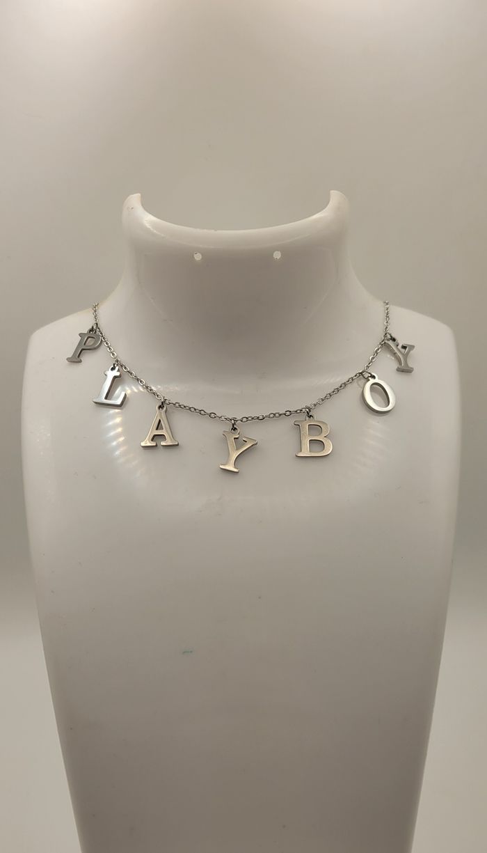 COLLIER LETTRES PLAYBOY ARGENTE ACIER INOXYDABLE AVEC BOITE ! NEUF ! - photo numéro 3