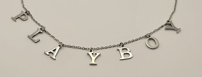 COLLIER LETTRES PLAYBOY ARGENTE ACIER INOXYDABLE AVEC BOITE ! NEUF ! - photo numéro 1