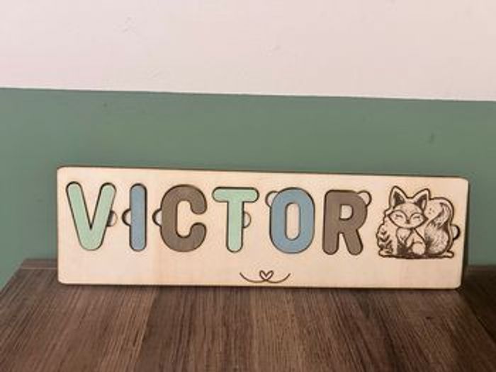 Puzzle prénom Panaché 3 couleurs à préciser en DM 18€ pour 3 lettres + 1€ par lettre supplémentaire Choix de l’animal en DM