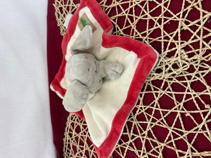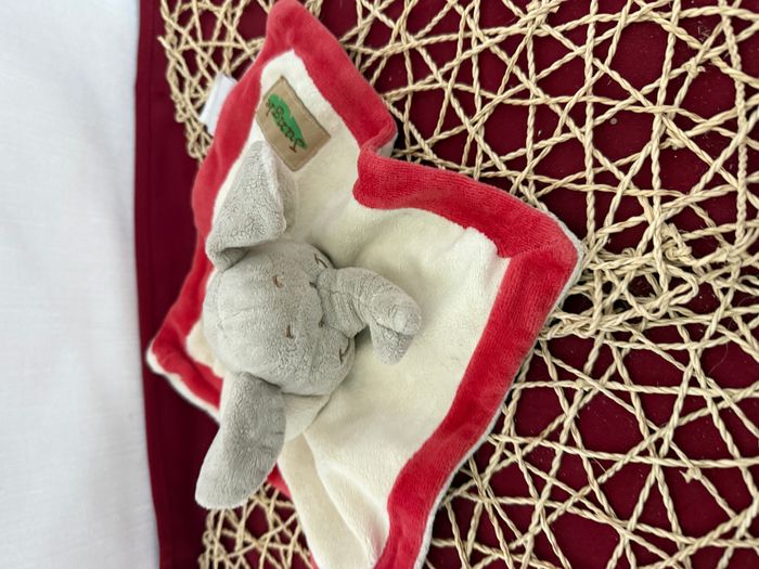 Doudou plat éléphant beige rouge Jungle BENGY