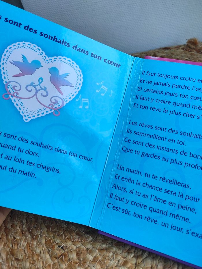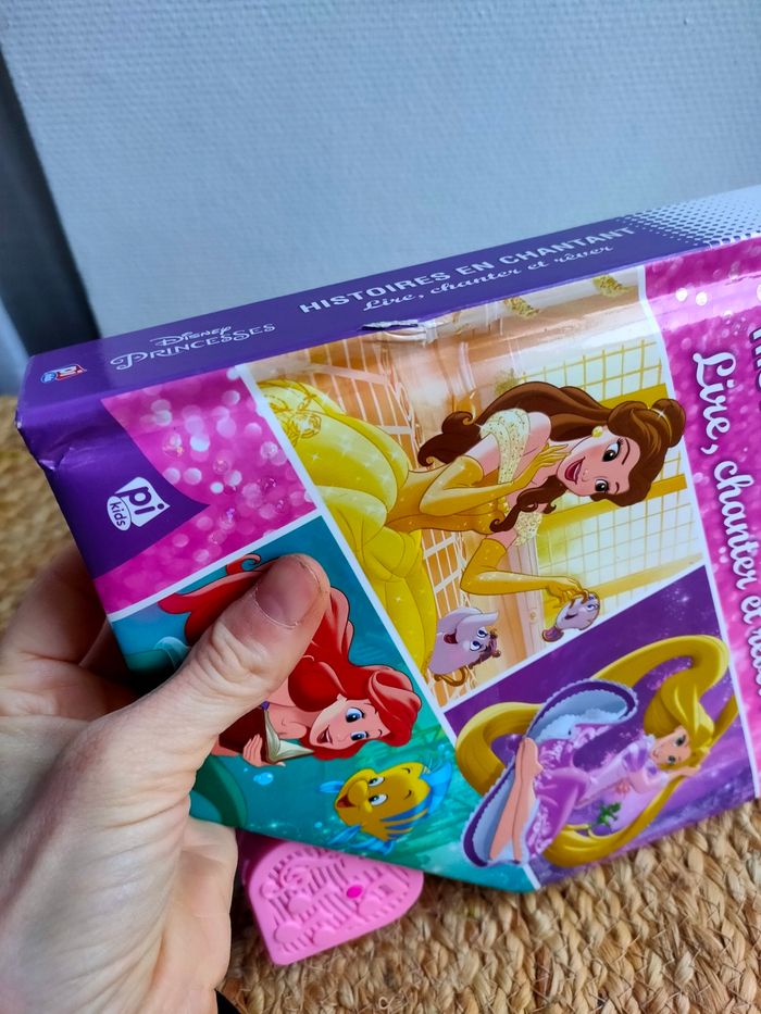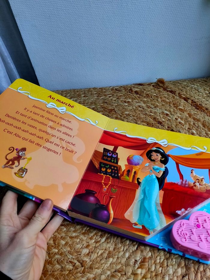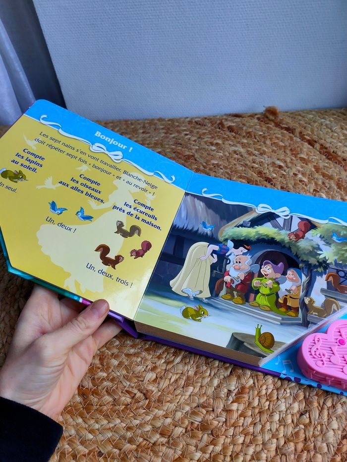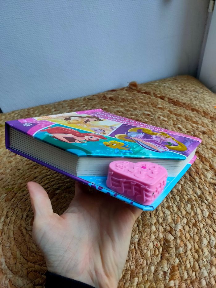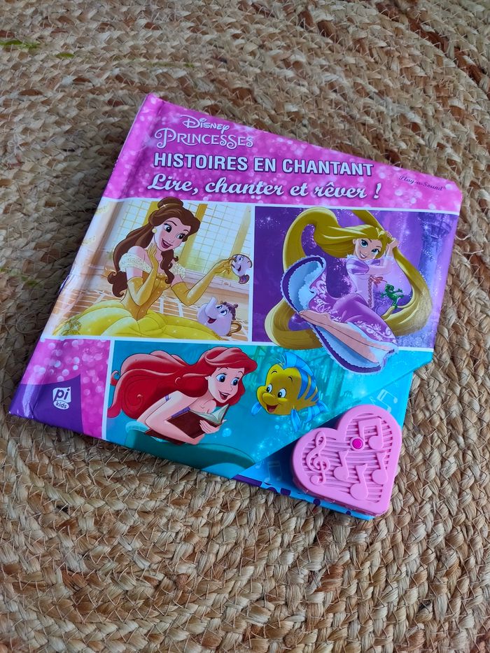Un livre mélodique parfaitement adapté à l'univers enchanteur et musical des Princesses Disney. Petites histoires a lire, des petits cherche et trouve, couverture matelassée et page en carton épaisses et très résistantes. Le livre a été manipulé par une enfant, il a des petite trace (voir photos), le livre reste en très bon état. Les piles sont neuves et ont été changé pour la vente. Prix ferme, PAS DE NÉGO !! Prix neuf 13€
