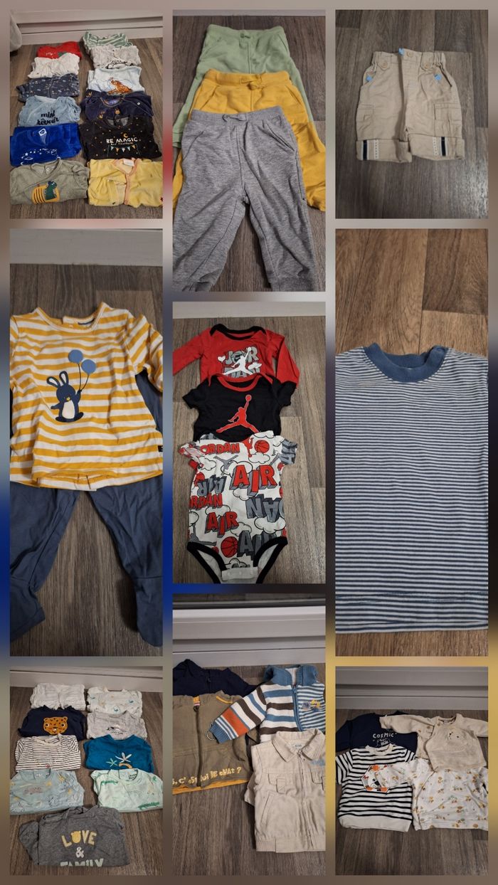 Lot 47 pieces vetements taille 6 mois Très bon état sauf 2 petites veste qui ont des tâches Prix lot 45 euros