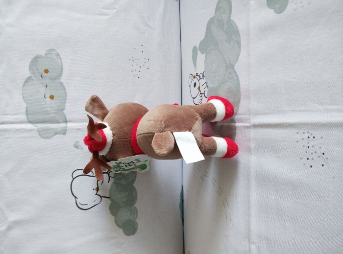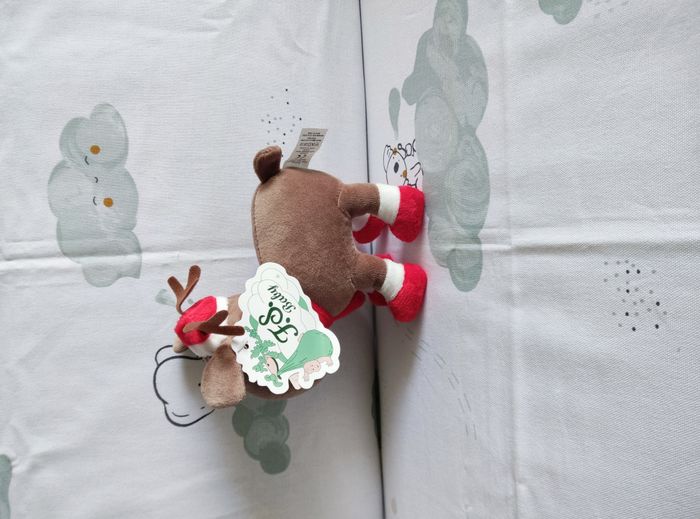 Tellement mignon qu’on a envie de l’adopter tout de suite 🥰 Petit Renne de Noël FS Baby tout doux, parfait pour un cadeau ou pour décorer la chambre pendant les fêtes. 20 cm, taille idéale pour les petites mains Grelot doux dans le ventre (pas bruyant, juste adorable) Oreilles sensorielles qui font scritch-scratch pour éveiller bébé Super moelleux, facile à attraper, léger Lavable en machine à 40° = facile à entretenir Normes CE Parfait cadeau de Noël prêt à offrir 🎁 Envoi rapide & soigné. Plus de photos dispo si besoin 📸