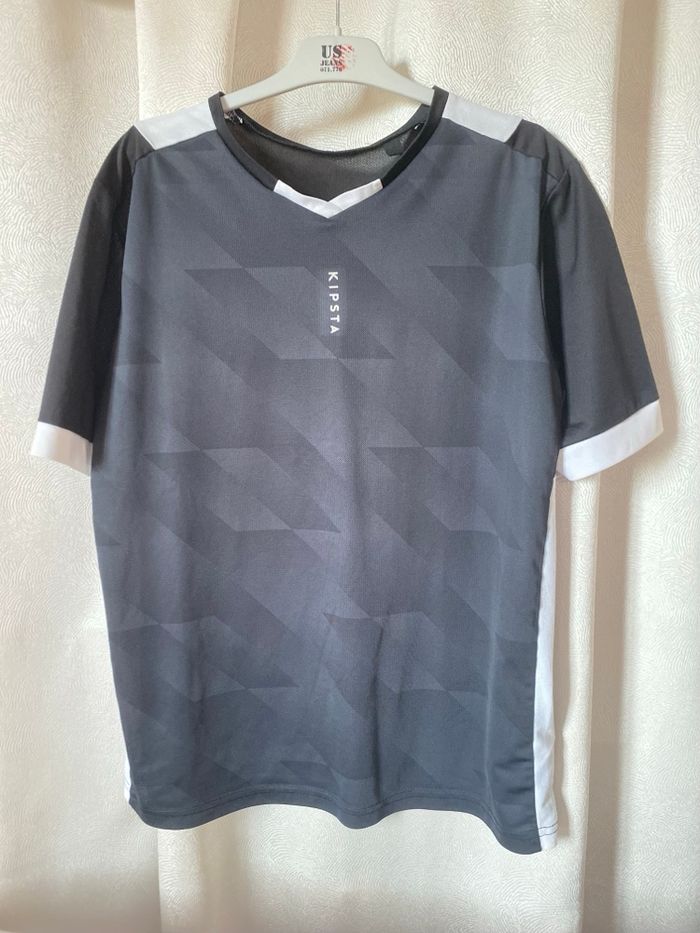 T-shirt de sport manches courtes noir et blanc Taille S 161-172 cm 15 ans 100% polyester Kipsta Decathlon Carrure 41,5 cm Aisselle à aisselle 50 cm Longueur 62 cm
