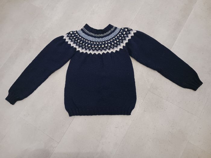 Pull marine et jacquard 38 tricoté main Esquimaux neuf